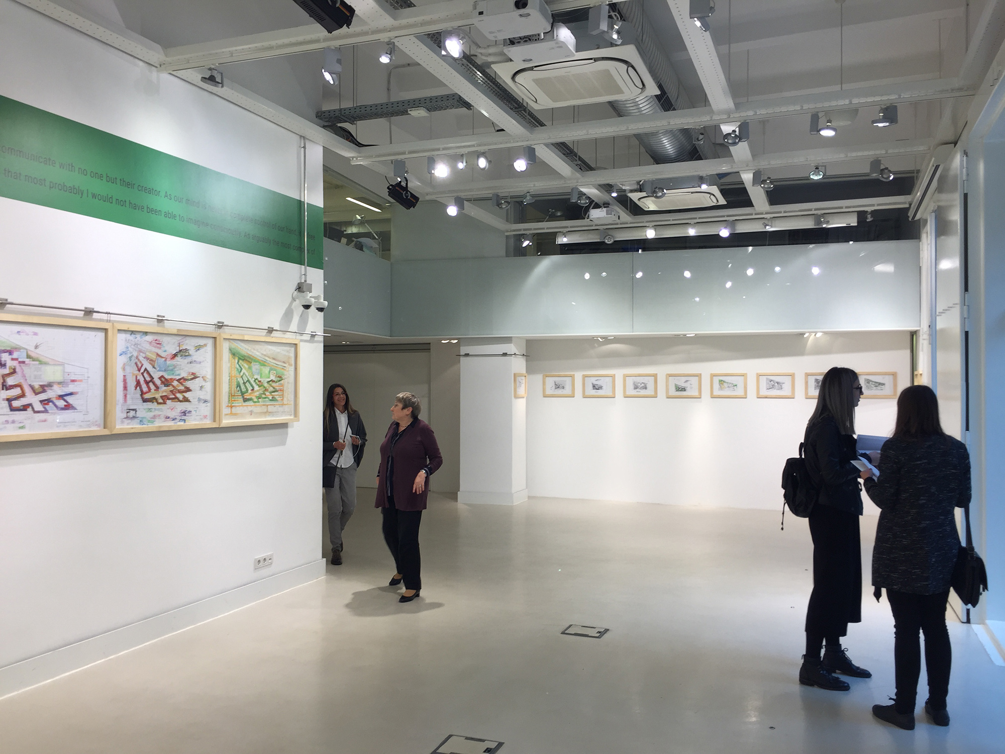 The design of the exhibition exploits the particular configuration of the gallery walls to convey the nature of the design process, particularly its continuous character.