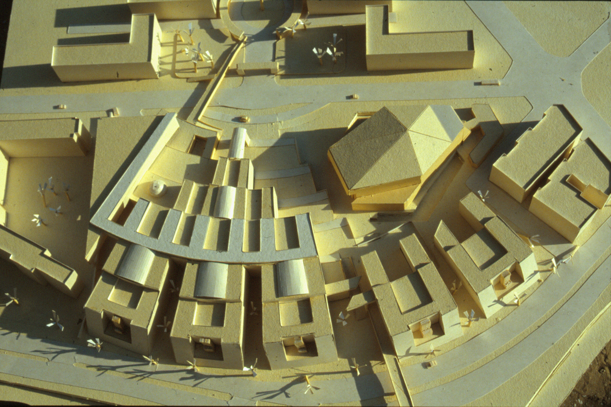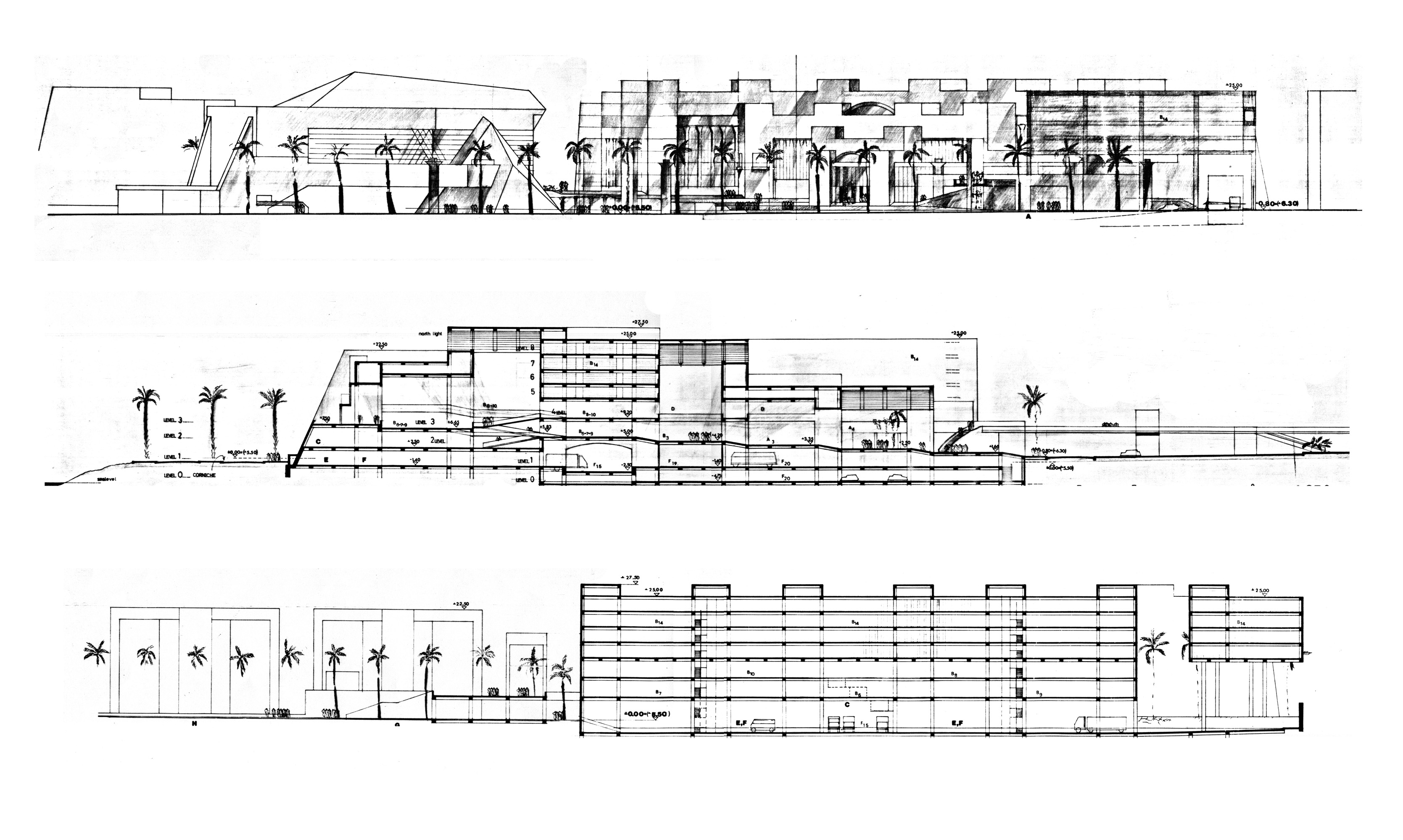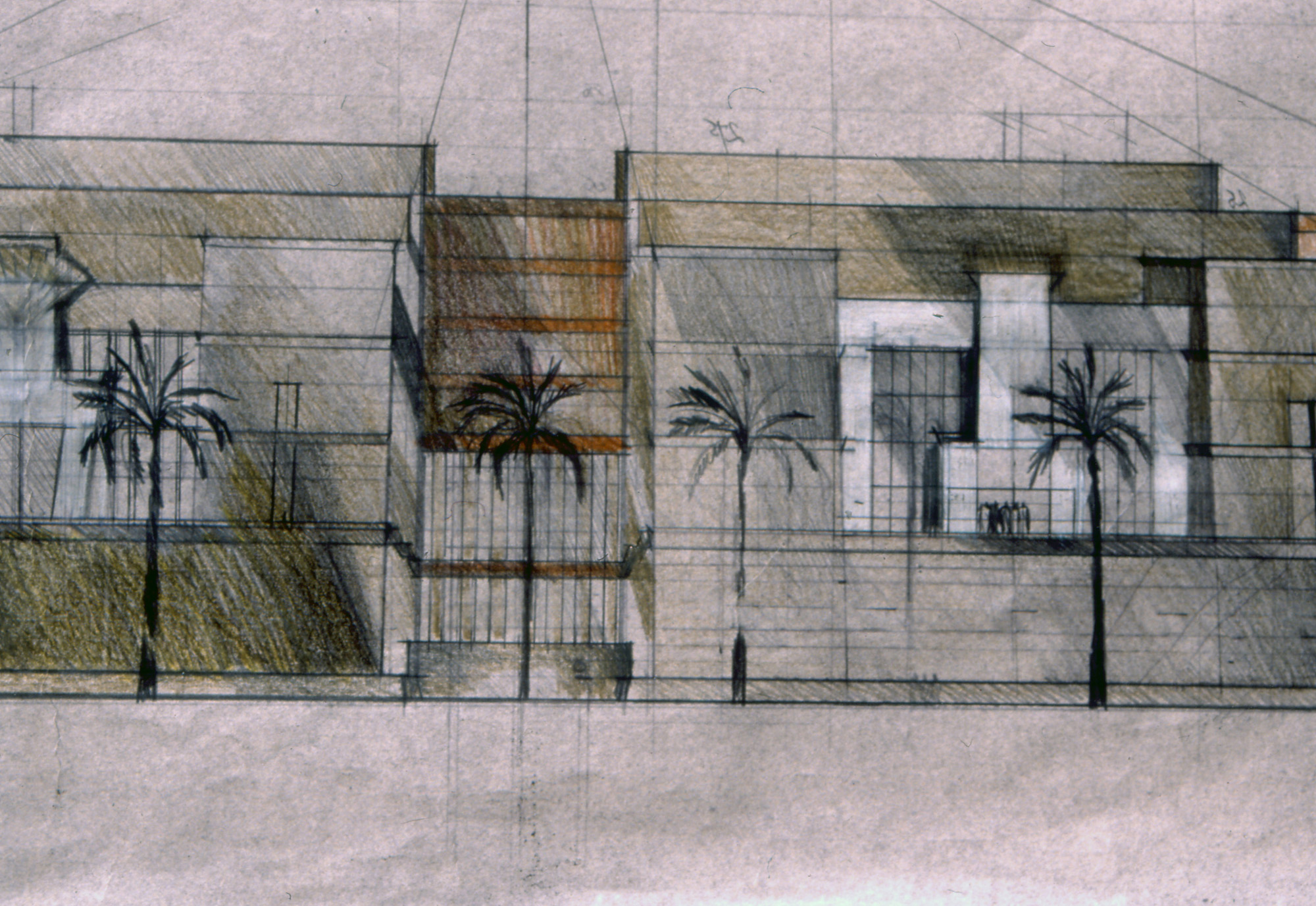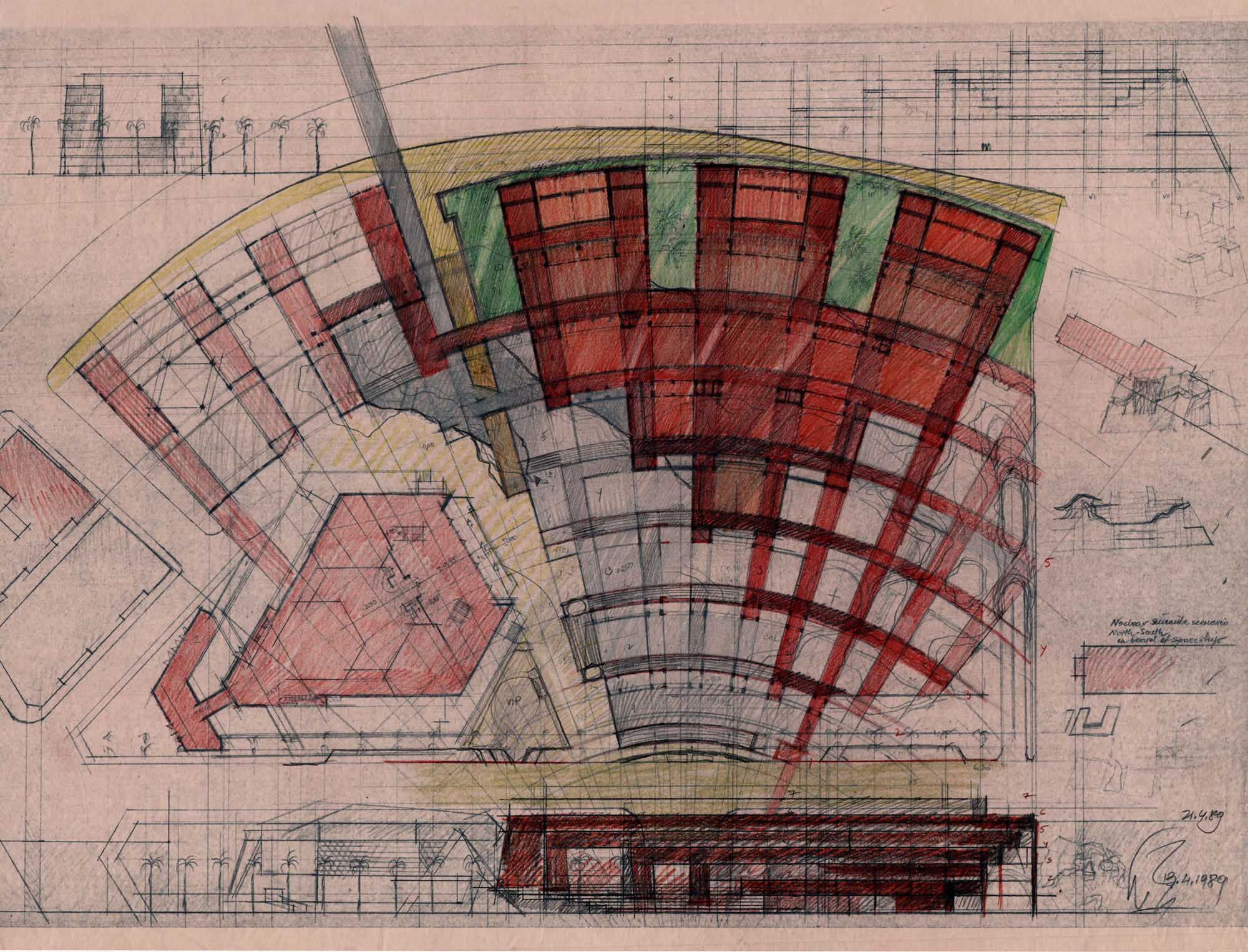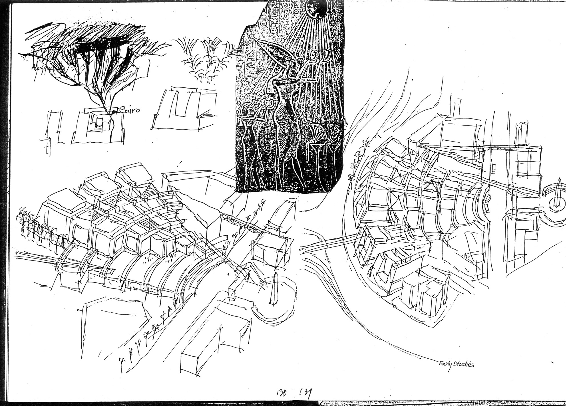 The land allocated for the Library complex is characterized by the proximity to the sea, on the waterfront of the CORNICHE, at the point where the finger-peninsula of ancient Lochias and Selselah-Garden touches the shore-line. The location is most central in the urban fabric of the greater Alexandria city, and constitutes a gap of discontinuity in the architectural built mass of the Corniche facade facing the sea. The proposed Library-design interlocks the architectural flow of the Corniche building continuity.